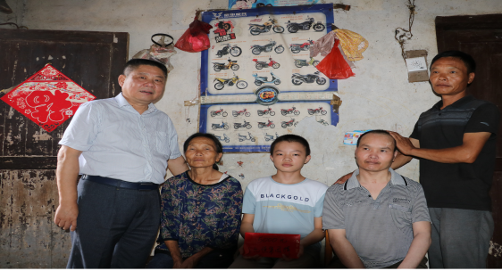 到達橋市鄉(xiāng)將軍沖村后,鄉(xiāng)黨委、鄉(xiāng)政府熱情接待了尹總等一行,對他們代表九恒董事長沈云立同志捐資幫扶行為給予高度贊揚并表示衷心感謝。在鄉(xiāng)鎮(zhèn)、村干部的帶領(lǐng)下,尹總一行還深入到貧困學(xué)生家中進行走訪慰問。他們每到一處,都會與幫扶對象面對面交談、心貼心交流,詳細了解他們的家庭情況、健康狀況、經(jīng)濟來源等,聽取他們對目前存在的困難及生活方面的訴求,并鼓勵他們樹立信心,奮發(fā)進取,在黨和政府領(lǐng)導(dǎo)下早日脫貧致富。隨后,尹總代表九恒董事長沈云立同志將愛心助學(xué)款共計50000元發(fā)放到13名品學(xué)兼優(yōu)、經(jīng)濟困難的學(xué)生手中。