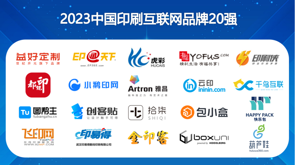 在報告開始之前,首先發(fā)布“中國印刷互聯(lián)網(wǎng)品牌20強”,這是科印網(wǎng)連續(xù)第9年公布20強榜單,這份榜單在一定程度上反映了中國印刷互聯(lián)網(wǎng)市場的情況,它也見證了印刷互聯(lián)網(wǎng)的萌芽、成長和發(fā)展。下面,讓我們一起揭曉2023中國印刷互聯(lián)網(wǎng)品牌20強。